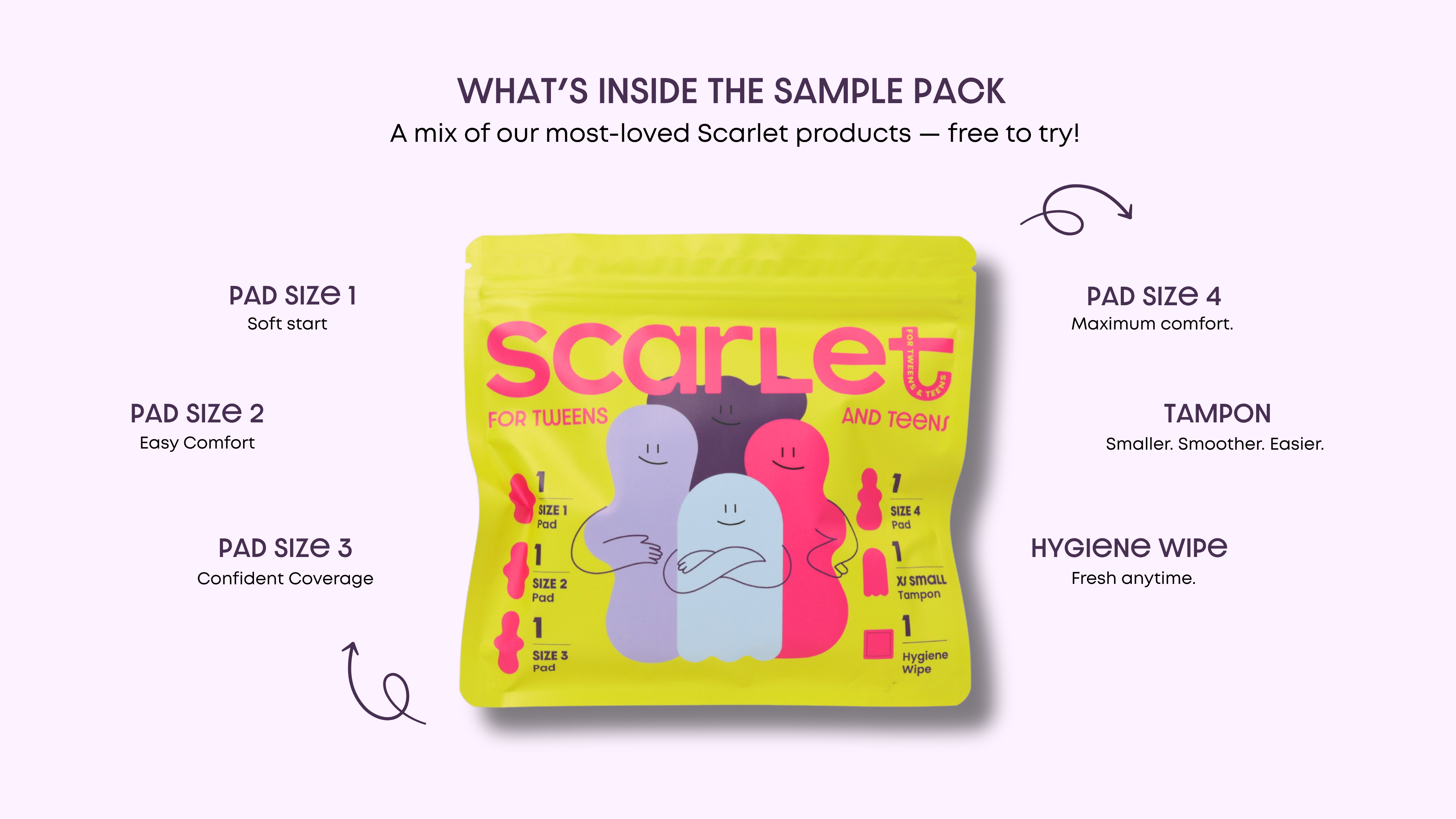 Get our most-loved pads in one free sample pack and discover why Scarlet by RedDrop is made for growing bodies. Smaller, softer, and made to fit her.